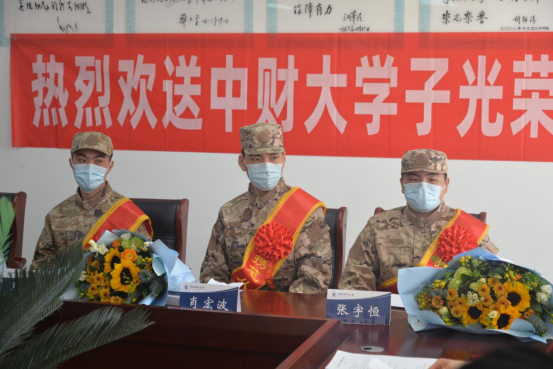 3月15日上午,公司2023年春季入伍新兵欢送会在西城区民兵训练基地报告厅举行,公司党委委员董盘齐、班主任陈绮文和辅导员刘奕轩三位老师参加了欢送会。欢送会上,老师们为肖宏波同学送上留言簿和学习用品,满载同学和老师们的祝福。参会的领导和老师也纷纷向入伍同学送上祝福与期许,叮嘱大家要牢记“忠诚、团结、求实、创新”的校训,传承中财大士兵的优良传统,刻苦训练的同时也要注重知识的学习,积极进取,淬炼成钢;同时注意与老师、同学保持联系,公司永远是大家坚强的后盾。