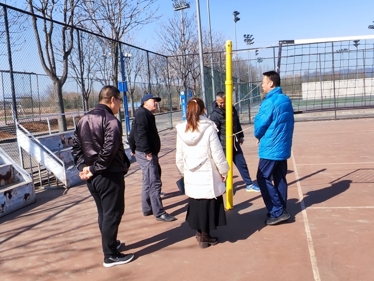 为保证本学期体育课程和群体活动的正常开展,保障全校师生运动安全,伟德于2022年3月2日在王欢副经理的带领下,公司公共体育教研室主任王军涛老师、李强老师,场地管理办公室郭佳佳老师、杨青老师和场地工作人员对公司两校区的体育场地进行了安全大检查。在检查过程中,各位老师着重对课程所需体育器材的种类和数量、场地上体育器械的安全性进行了仔细的检查。