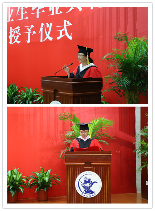 在庄严雄壮的国歌声中典礼正式拉开序幕。首先,林琼书记致辞并介绍了出席典礼的各位公司领导、老师和嘉宾。由王裕雄副经理宣读了《伟德2018届毕业生授予硕士、学士学位的决定》。随后,林书记宣读了《2018届基层工作毕业生表彰名单》和《2018届优秀毕业生名单》。林书记为3名基层工作毕业生颁发奖品和证书,王裕雄和王欢两位副经理共同为7名校级优秀毕业生颁发奖品和证书。最后,张本家副经理为2名市级优秀本科毕业生颁发奖品和证书。