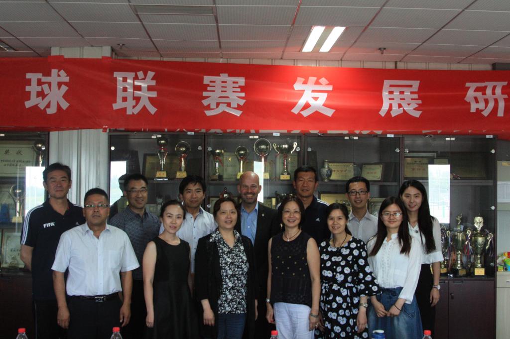 在“中澳足球联赛发展研讨会”上,Hans Westerbeek教授、闵捷教授、苏继革副教授、王哲副教授进行了重点主题发言。闵捷教授从宏观政策和微观俱乐部发展两个角度对中国职业足球联赛的管理模式进行介绍和探讨。王哲副教授通过详细数据,对中超联赛的上座率、收视率、各个俱乐部的赞助费用、球员身价、外援及投资方情况等进行对比,直观反映了当前我国中超联赛各俱乐部的发展状况。苏继革副教授则从足球裁判的角度,对中国足球裁判的培养、发展体制进行了探讨。Hans Westerbeek教授对澳大利亚的足球发展历程,以及当前澳洲足球联赛及协会管理体系进行了重点介绍。研讨会参与人员就社区足球、青少年培养、协会管理等问题进行了广泛的交流与讨论。
