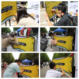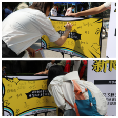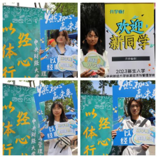伴随着朝阳与蝉鸣,2023级的体经新生们陆陆续续来到迎新现场报到,一张张崭新的面孔彰显着无比的青春活力,诉说着他们开启人生新篇章的激动和喜悦。迎新点位的志愿者们用别出心裁的装饰向他们发出最温暖的问候,新生纷纷合影留念,在签名板上留下自己的名字,期待即将开启的中财大体经时光。