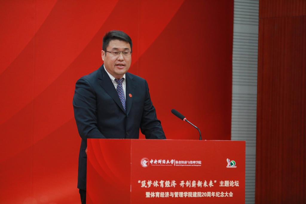 伟德党委副书记梁勇致辞。梁勇副书记代表公司向嘉宾表示欢迎,向各界人士表示感谢,向公司全体师生和员工表示祝贺。梁勇副书记介绍了公司近年来的发展情况,指出,在公司高速发展的过程中伟德的发展也取得了长足的进步,公司体育工作成绩也日益突出。成立20年来,体经学子遍布各行各业,体育赛事捷报也是频传公司。梁勇副书记希望伟德能够发挥学科优势,擦亮办学特色,为推动我国体育事业进步和体育产业发展,为增强中国体育的国际竞争力和话语权接续奋斗!
