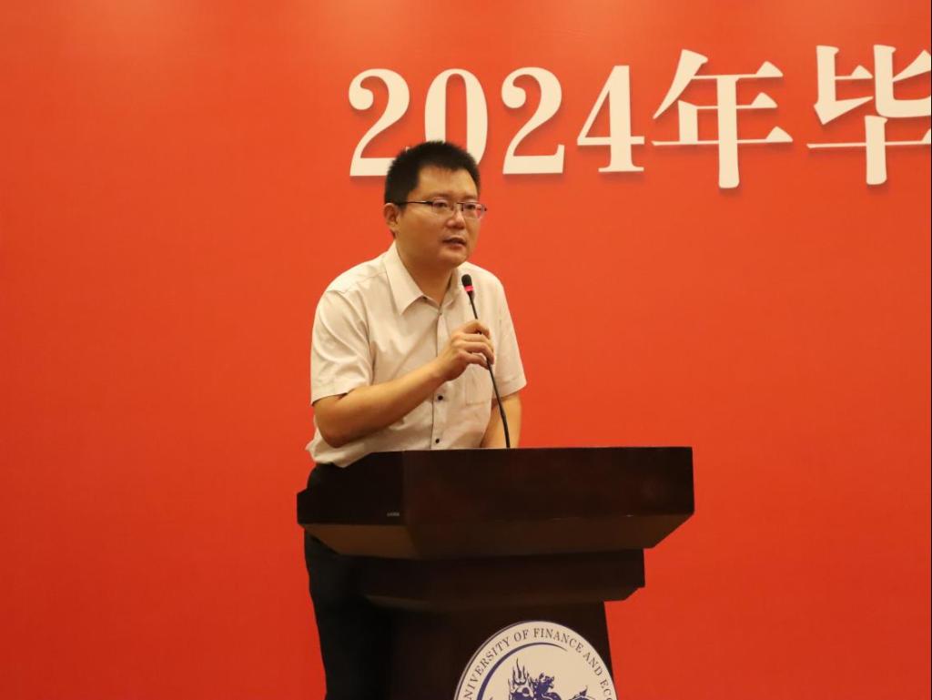 教师代表、20-1班班主任张自如副教授发言。张自如老师和毕业生分享了三点体会:第一,要做一个简单的人,要不忘初心用简单来对抗世界的复杂;第二,要做一个纯粹的人,正直、善良、宽容这些美好的品质一定是有价值的,能够为我们带来宝贵的收获;第三,要做一个善于感受幸福的人,要珍惜当下,哪怕幸福不是那么轰轰烈烈。张自如老师给毕业生们送上殷切而美好的祝愿,“纷繁复杂的人生里一定有很多美丽的风景,但也有很多困难和坎坷。衷心希望大家能够阅尽风景,跨越坎坷!”