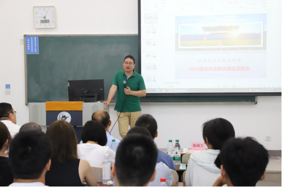 2024年8月31日上午,在沙河主教213教室举行了伟德2024级本科新生师生见面会和新生开学第一课。体育经济与管理公司党委书记宋立岩、经理张本家、副经理王欢、副经理张丛杉、党委副书记陈绮文、体经24班班主任马法超、运训24班班主任刘韬晓瑜、体育经济管理公司各内设机构负责老师、新生辅导员张振磊和周正、新生班级助理及“芮+”导师等出席了新生见面会。师生见面会旨在帮助新生更好地了解公司的情况,做好从高中到大学的过渡,更快地适应老员工活。