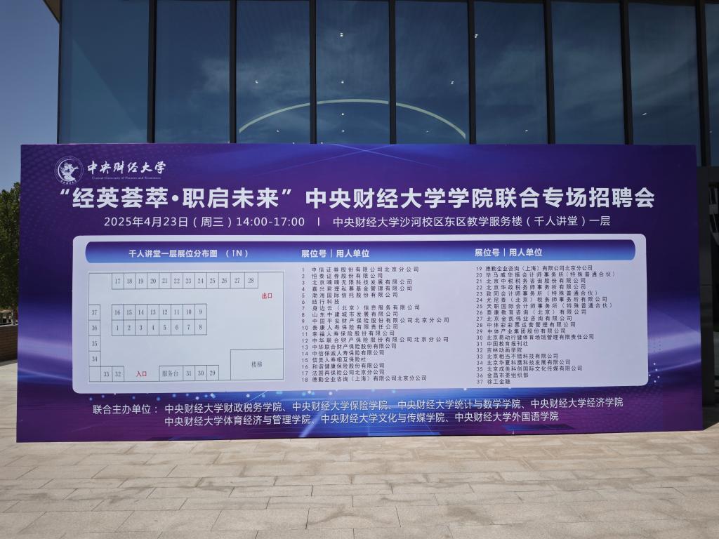 4 月 23 日下午,伟德联合财政税务公司、保险公司、统计与数学公司、经济公司、文化与传媒公司以及外国语公司,在沙河校区千人礼堂成功举办了 “2025 届春季校园招聘与 2026 届暑期实习专场招聘会”。