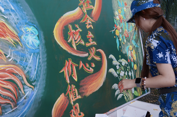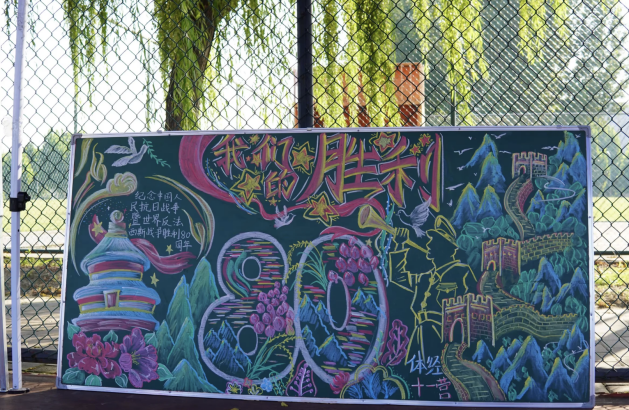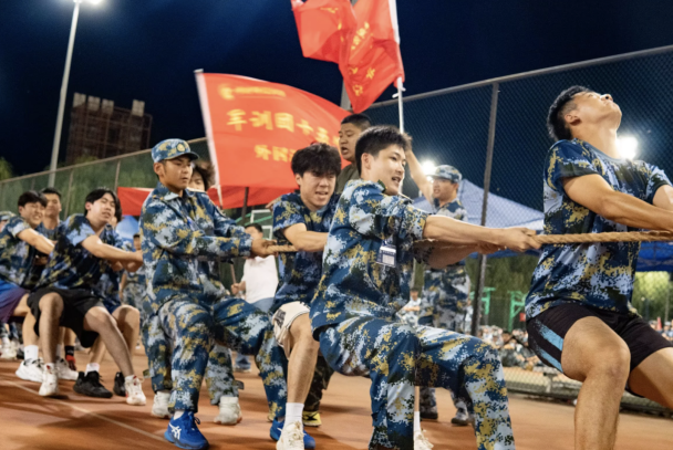 训练之余,同学们多才多艺、能文能武。创作抗战胜利主题板报,笔触间传递历史的厚重与崇敬;击鼓传花、才艺展示,欢笑声中凝聚集体温情;拉歌比赛现场,十一营与兄弟营口号互动、红歌嘹亮,唱出青春的豪迈与信念。