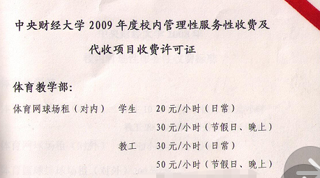体育网球场租,针对校内师生收费标准不做调整。具体执行标准如下: