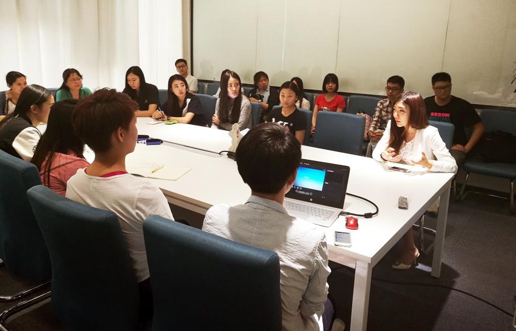 随后在会议室,光猪体育PR负责人付赟虹(公司08级优秀毕业生)向老师和同学们介绍光猪圈健身“小而美、高度互联网智能化、高度标准化营运体系、高度标准化培训体系、精准互联网营销体系、全面合伙人制度”的核心商业模式,也是健身行业前沿领先的标准。