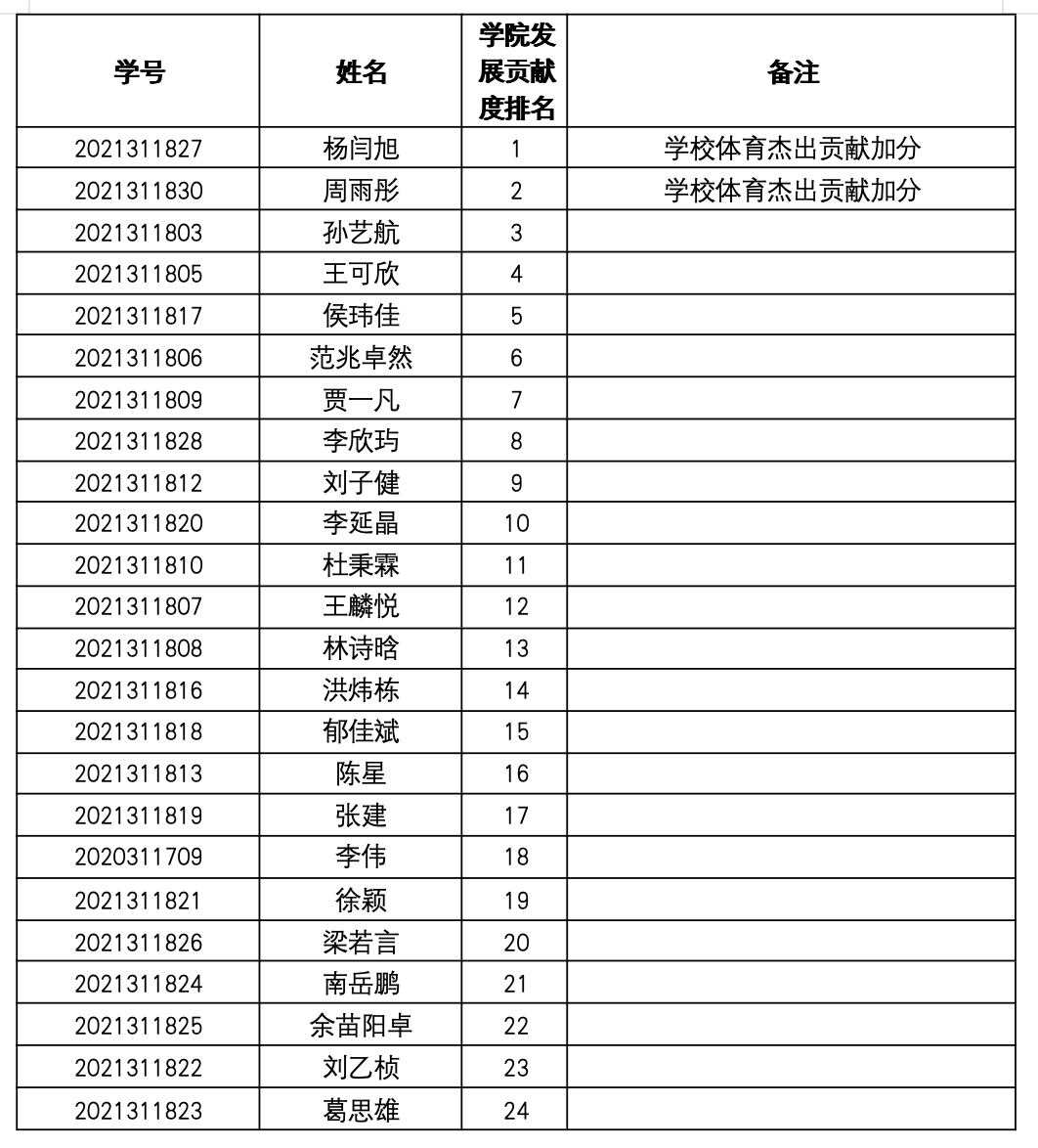 2、公司杰出贡献推免名额(2个),在全院范围内根据员工在校期间为公司发展建设的贡献度进行排序,不区分班级。综合排名得分计算公式如下: