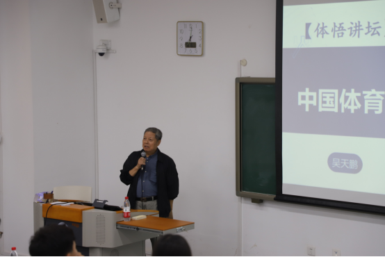 吴天鹏先生还向同学们介绍了我国建国初期体育事业发展的情况,他的父亲吴江平同志是国家第一代体育人,在当年体委工作时恰逢建国伊始百废待兴,吴江平同志积极投身到国家的体育事业建设,也作为领队多次带领体操、举重、武术等多个项目参加国际大赛并取得成绩为国争光。