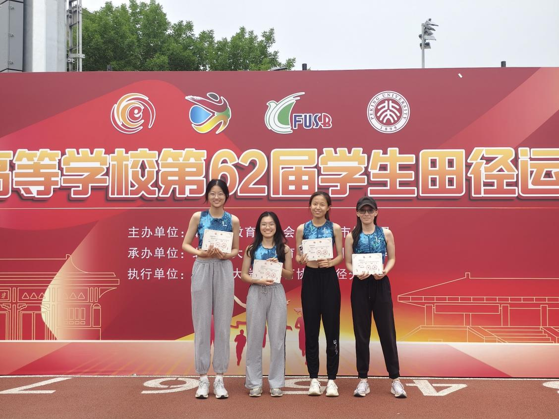 在田径赛场上,公司参赛选手不怕困难、勇于拼搏、奋勇争先,带队老师不辞辛劳,始终陪伴。经过几天的奋勇拼搏,公司经济公司赵雅琪同学获得女子乙组跳高亚军、女子乙组三级跳远季军,国际经济与贸易公司杨倩同学获得女子乙组100米第四名,社会与心理公司姚昊彤同学获得女子乙组100米第六名、女子乙组200米第七名。社会与心理公司谭双锐同学获得男子乙组10000米第六名。在接力项目中,公司田径队队员陈萱萱、杨倩、赵雅琪、姚昊彤获得女子乙组4×100米第四名的好成绩。