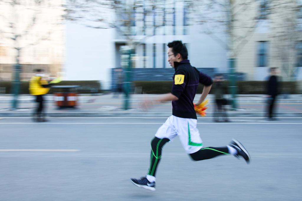 下午一点半,朝气蓬勃的运动员们来到沙河校区东区体育馆内,在指导老师的带领下,进行了冬季锻炼前十分重要的热身与准备活动,并了解了比赛规则、赛道概况以及比赛流程。在准备工作就绪后,随着裁判长的一声哨响,各个公司第一棒的同学出发,本次比赛也正式拉开了帷幕。在比赛的初始阶段,运动员之间的竞争尤为激烈。即便是在刺骨的寒风中,运动员们也个个奋勇争先、竭尽全力。他们展现出的良好的精神面貌给在场观众留下了深刻的印象。在比赛中,接力棒的角色是由写有公司名字的绶带来承担的,一条条绶带成为了比赛中一道亮丽的风景线,它们不单单是连接两棒选手的中介,也承担着同学们的集体荣誉感。