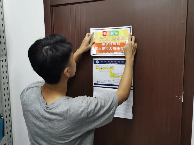 在张贴安全提示的过程中,首先党员和积极分子们向宿舍成员说明了此次活动的原因和意义,活动旨在提醒同学们注意宿舍安全问题,避免出现安全隐患。其次党员和积极分子们为同学们介绍了宿舍安全知识和现存的各种安全隐患及可能引发的后果,并向同学们分享了之前公司发生过的安全事故案例,希望同学们能引以为戒,对宿舍安全时刻保持警惕,避免悲剧发生。之后党员,积极分子和宿舍成员共同在门上张贴了安全提示,在进出门时提醒同学们检查宿舍安全,避免出现安全问题。同学们纷纷对此次活动表示了支持和感谢,表示一定会对目前存在的安全问题进行整改,并积极利用安全门贴时刻提醒自己,互相监督,营造一个安全良好的宿舍环境。