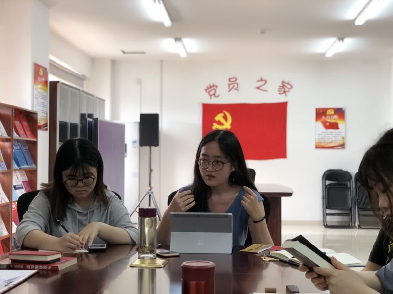 会议第二项,针对“如何提升学习强国的热情?”开展了专题研讨。李秋月老师强调作为党员,应积极鼓励入党积极分子加深时事关注度,提升政治视野。员工党员孙悦提到在学习“学习强国APP”中可以建立一个学习强国分享群,把每日看到比较好的文章、视频等在群中与大家分享讨论。同时,可以组织一次党员与积极分子竞赛答题活动,提升党员的学习热情也可以带动积极分子加强对理论知识的学习,李凌晨同志认为在筹备竞赛题目上,可以分专题分组进行筹备。随后,会议就“挑战答题”新板块的学习策略进行了讨论,大家认为新板块的学习内容知识面广、涉及文学、历史、政治等领域,拓展了视野。接着,胡庆同志提出在视频学习中,推荐大家增加对“党政历史栏”关注度,这样可以拓展党史知识的储备。李凌晨同志认为在“新闻联播”栏目的学习,可以及时了解时事热点,提升学习热情;在“答题环节”中有关“电影”的填空题中,很多电影都是值得观看的,建议支部可以在今后的“红色观影”中放映。朱婧池同志则分享了在“学习强国APP”中对中美贸易战、自身相关专业等栏目的学习,她认为在日常APP的学习中,可以增设“固定专栏学习分享会”,把自己有价值或者有深刻感悟的内容及时分享给大家。王超同志从自身感悟去分析,认为从“强制要求”到“潜移默化”去学习,这便是习惯的养成,加强对“学习强国APP”内容的学习,也是作为共产党员关心国家大事的重要表现。