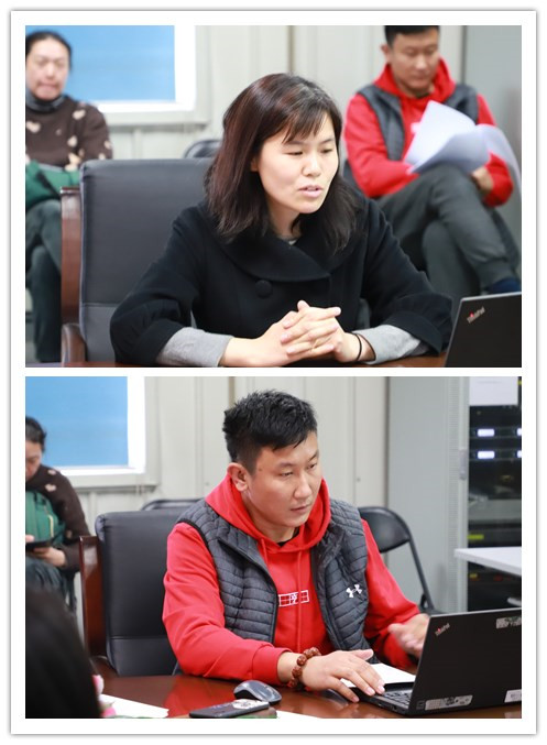 首先,林书记介绍本次考核会的召开背景,不同于以往的支部书记考核,本次述职考核工作和支部测评工作一并开展,述职评议考核小组除了党总支委员外,还吸纳了教工党员代表、群众代表、青年教师代表和员工代表,从不同群体的角度考察党支部在服务师生群众方面的工作成效。专业课教工党支部书记刘彩凤同志就工作职责、组织建设、支部作用发挥、支部活动记录、党员教育和管理以及工作要点等方面进行述职。她认为今后工作的方向是:创新活动内容与形式,提高党员活动参与率;进一步加强党支部成员之间的沟通;加强支部工作与专业建设之间的关联。然后,公体课教工党支部书记杨海林同志就履职主要情况和特点、开展工作情况、存在的主要问题和加强和改进工作的思路措施四方面总结了过去一年的工作。他重点介绍了支部开展的学习培训和实践活动,最后表达了自己今后不断努力提升工作水平更好为大家服务的决心。
