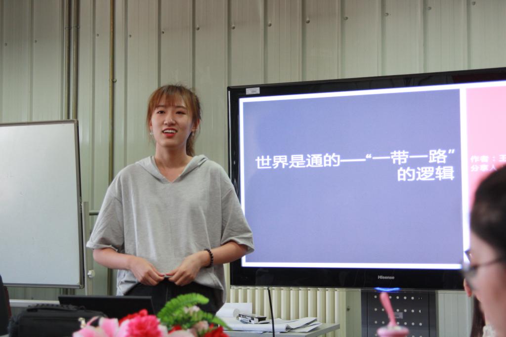活动伊始,主持人员工党员王佳妮向大家做主题相关介绍,通过一张图和一个视频让大家全方位的了解了“一带一路”。随后,员工党员杜文竹和姜昊男分别做主题相关分享。杜文竹向大家推荐了书籍《世界是通的》,她结合书中论述对我国“一带一路”做出了精彩的解读,并鼓励在座的党员同志“多读书,读好书”,积极探索值得一读的书籍。姜昊男同志则带领大家以一个志愿者的角度走进“一带一路”高峰论坛,详细介绍了他在志愿服务期间的丰富经历,他通过志愿期间的照片及相关物品给大家展现了一个从独特视角看“一带一路”的景象,充分调动了在场党员和积极分子的兴趣与热情。