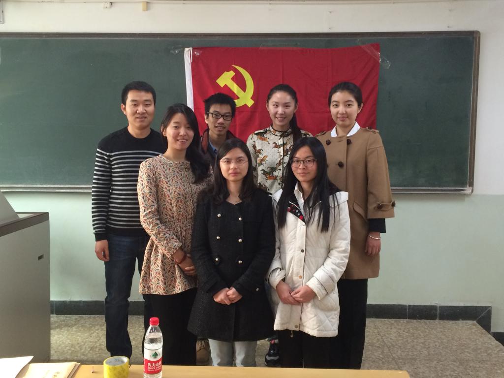 2014年11月19日下午,公司研究生党支部于公司南路主教学楼313召开党员发展大会暨党员先锋工程承诺践诺专题组织生活会。会议由党支部书记张振磊老师主持,支部首先听取并讨论发展詹丁同志为预备党员的情况以及听取和讨论刘秀娟同志预备党员转正情况,随后召开了党员先锋工程承诺践诺专题组织生活会,共同交流党员自身践诺要求。
