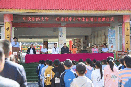 2021年7月,体育经济与管理公司党员管理干部团队等一行12人到甘肃宕昌调研,根据哈达铺中小学的体育场地设施实际情况,自费采购价值超过6000元的体育用品,除了篮球、排球等大球和乒乓球、羽毛球等小球,还准备了跨栏,不但有标准尺寸的体育用品,还有专门针对小员工尺寸的球类。公司两位公体课教师还与小学教师交流教学,展示了公司篮球课的教学内容。