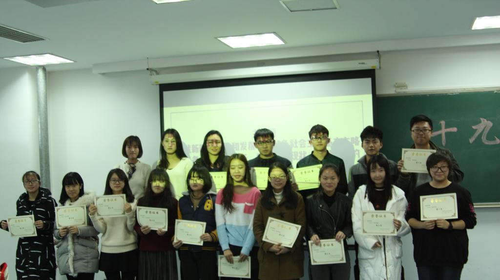 五个小组按序发言完毕,知识竞赛进入最紧张的投票环节。获得第三名的是第一组(郭晓艺、余文洁等),第二名获得者是第二组(刘子轩、蔡昭伍等),第一名则由第五组(徐琛、马枢佳等)获得。公司员工会主席刘嘉琪同学员工会副主席杨莹昱同学、团委副书记张萍同学为三个优胜小组颁发奖状。