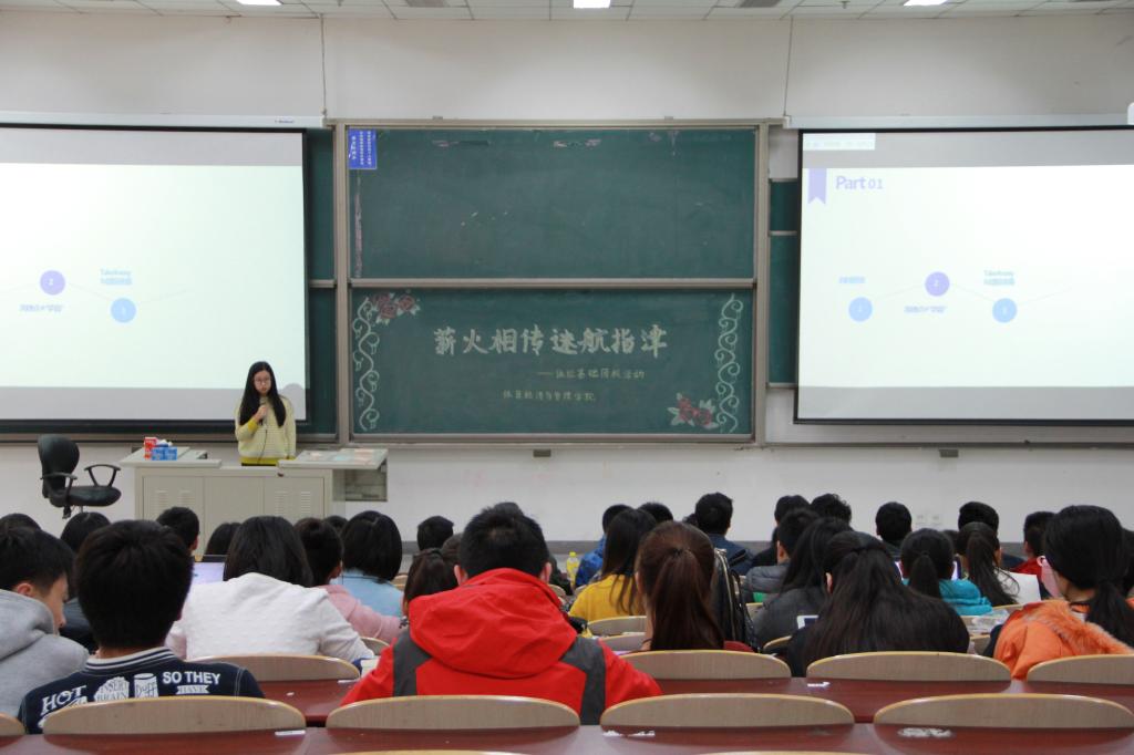 首先,来自13-1班的熊瑶学姐与同学们进行了精彩的交流,她从学习、员工工作、实习和生活四个方面对老员工活进行分享,并从她在校园中的亲身体会和在IMG等跨国大公司的实习经历引出个人感想,建议同学们学会管理自己的课余时间,并劳逸结合地完成学业和员工工作,同时为保研、留学等未来目标做好一定的提前准备。她鼓励同学们在勤奋之余培养自己的兴趣爱好,让大学成为美好的人生记忆。