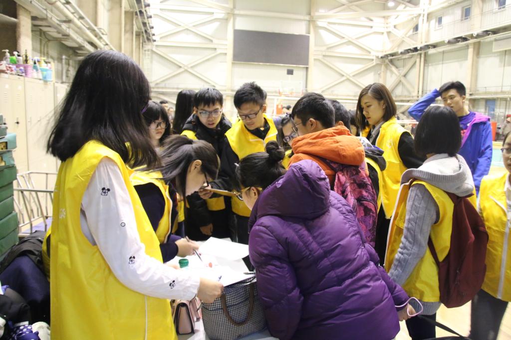 晚上六点半,赛事准备工作有条不紊展开,公司员工会项目部成员及志愿者同学们早已就位,部分参赛队员陆续进场热身,观众依次有序入场。