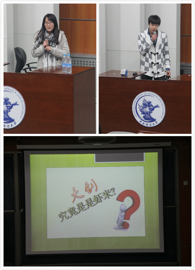 此次交流会共分为两个部分,第一部分是由在大创中拥有突出表现的学长学姐进行经验分享。首先与大家分享的是伟德的卓钊,她谈到了在自己的手工艺DIY项目中遇到的困难和惊喜,并提到在立项的过程中要有详细的规划,要对自己的项目充满信心。接着与大家分享的是来自管理科学与工程公司的王方键,他分享了自己曾经参与过的诸多项目,大方不失幽默的语言令同学们印象深刻,他鼓励大家虽然在创业的期间会有失败,但不要想放弃,他告诉大家“只有敢闯,敢做的人,才能做成大事。”