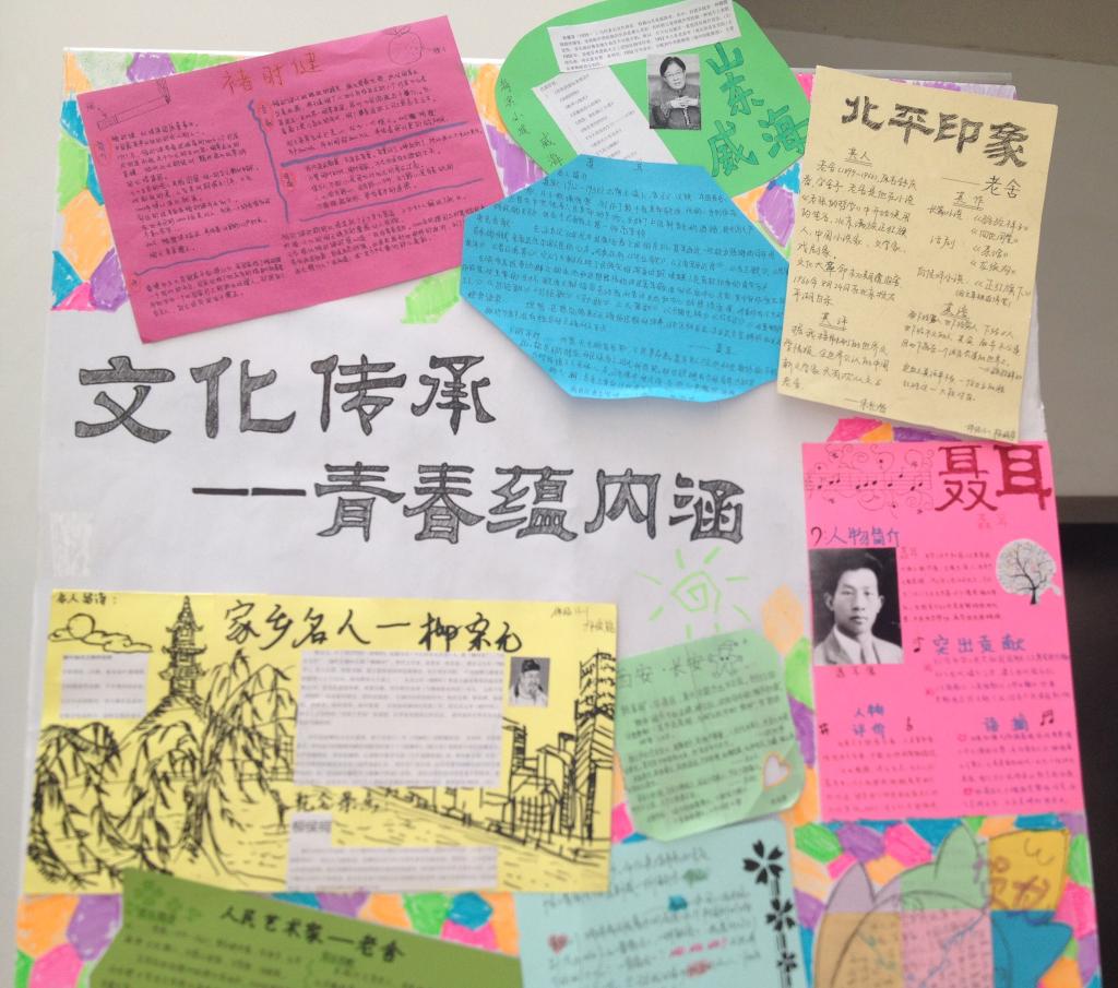 本次活动以“文化积淀,青春更深厚”为主题,要求同学们自备彩色卡纸一张,自己设计裁剪成任意形状,选出一位自己崇拜的家乡名人,上网查询资料或向长辈亲友询问,整理素材后写到卡纸上。同学们都踊跃参与,设计十分用心,内容涵盖了人物简介、突出贡献、经典语摘、古今评价等多方面内容,版面图文并茂、编排精美。制作完成后,同学们统一上交至班级团支书处,由组织部成员将卡片粘贴到展板上,并摆放到主教一楼大厅进行展览。在主教上课的同学都纷纷驻足观看,相互讨论交流,反应十分热烈。