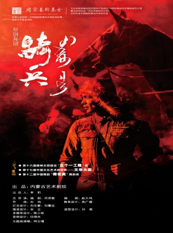 《骑兵》是中国舞台艺术史上首部以骑兵为题材的原创民族舞剧,是一部反映时代转折关头,个人命运选择与国家民族命运选择紧密相连的作品;是一部蕴含人性之美、万物和谐、人类和平愿景的作品;是一部激励当代人向忠诚勇敢的人民骑兵致敬的作品。全剧共分为六幕:男儿归、草原殇、从军别、战马情、英雄泪、骑兵魂,讲述了受到中国共产党革命思想感召的蒙古族青年员工朝鲁,坚定地选择加入内蒙古人民骑兵队伍,为全中国的解放而战斗的故事。全剧最后,失去左臂的英雄朝鲁选择放下属于他的荣耀,带着牺牲的战友和战马的忠魂回归草原。硝烟散尽的今天,历史的丰碑上字迹鲜红,那是我们永远都不能忘记的先烈。