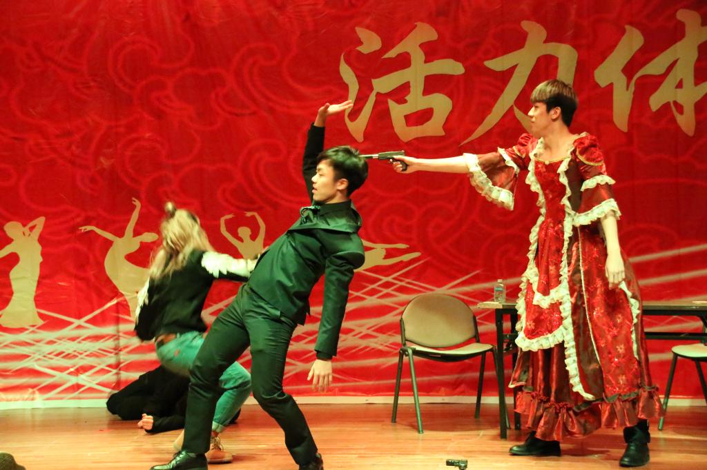 说学逗唱捧,相声是晚会不可缺少的元素之一,程俊彦和烟宏波同学带来的相声表演《俊彦学艺》,引来现场阵阵喝彩。徐琛同学和法公司员工带来乐器演奏《弹弹弹,弹走鱼尾纹》,将流行音乐与古典音乐,利用吉他、琵琶、古筝和民族鼓等进行创意结合。而员工会文艺外联部带来的小品《中财赌场》更是让观众几度捧腹,欢笑不断。
