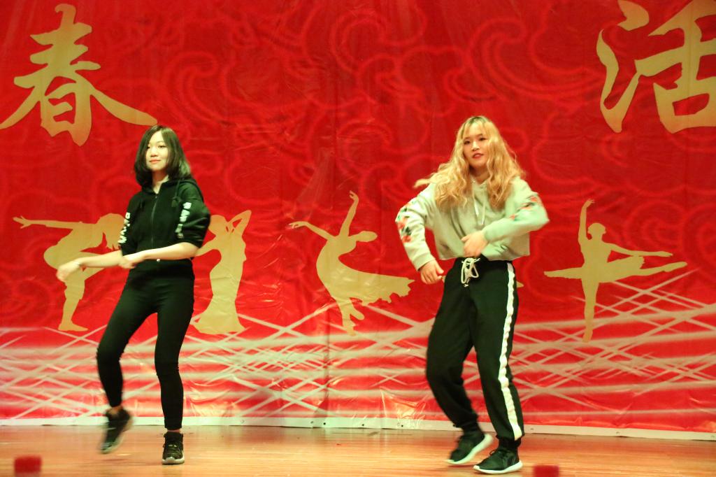 热情洋溢,青春动感,王曼茜等2位同学带来的现代舞《one plus one》用时尚与节奏点燃了现场的气氛,展现出青年学子对于美好生活的向往和激情。大学是求知的殿堂,恰同学少年,风华正茂;大学也是品尝甜蜜的城堡,学霸情侣,携手成长,蔡昭伍等5位同学用歌曲串烧《小情侣与“单身狗”》创意演绎了大学中的成长与美好。