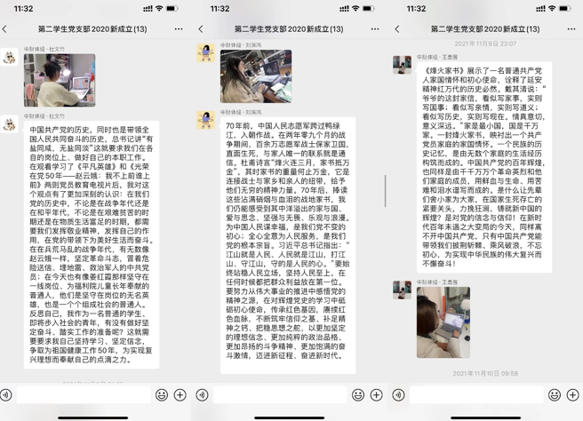 在会后,同志们针对《烽火家书》一片交流了感想,同志们普遍表示通过对这一作品的集中观影学习,更加强烈地体会到了每名党员先辈心中的家国情怀。杜文竹同志结合自身对电视片展映中《平凡英雄》等其他作品的学习,提出无论是在战争年代还是和平年代,坚持学习,坚定信念,为祖国和人民奋斗都是对每一名党员的基本要求。而李明同志则结合《党课开讲啦》栏目表达了自己接过先辈革命的接力棒的决心。吴婧洋同志结合自己观看的《党的伟大成就》学习材料,探讨了以观看《烽火家书》等培训篇学习党史对于党员培养的重要作用。其余同志也分别针对本次电视片观摩学习活动中观看的电视片作品进行了深入的交流和讨论。