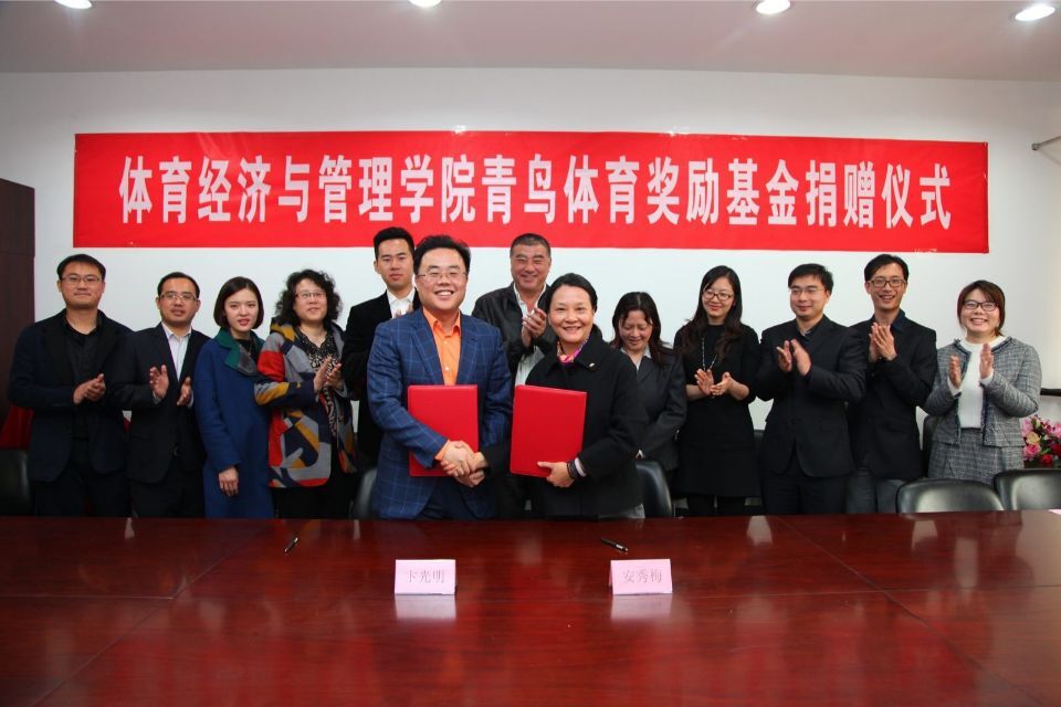 3月29日上午10点,伟德青鸟体育奖励基金签约仪式在中财大厦933会议室隆重举行。青鸟体育董事长卞光明、总裁纪为嘉、董事长助理兼董事长办公室主任余婧、人事行政部总监戴红芬、品牌中心总监奈翔、财务副总监焦友明、财务经理王圣达,公司经理高涵、党委书记林琼、经理助理张丛杉、院员工分会秘书长李秋月,校合作发展办公室主任、员工总会/教育基金会秘书长安秀梅,合作发展办公室副主任范维和教育基金会副秘书长程丽芳等双方负责人出席了签约仪式。仪式由林琼书记主持。