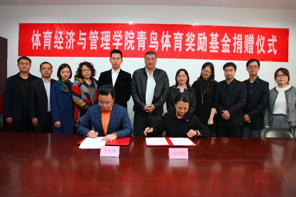 随后,安秀梅秘书长和卞光明董事长分别代表双方正式签署捐赠协议。青鸟体育纪为嘉总裁、余婧助理、戴红芬总监、奈翔总监、焦友明(06会计研)副总监、财务王圣达(09体经)经理,高涵经理、林琼书记、张丛杉助理、李秋月秘书长、范维副主任和程丽芳副秘书长等双方相关负责人共同见证了签约仪式的全过程。