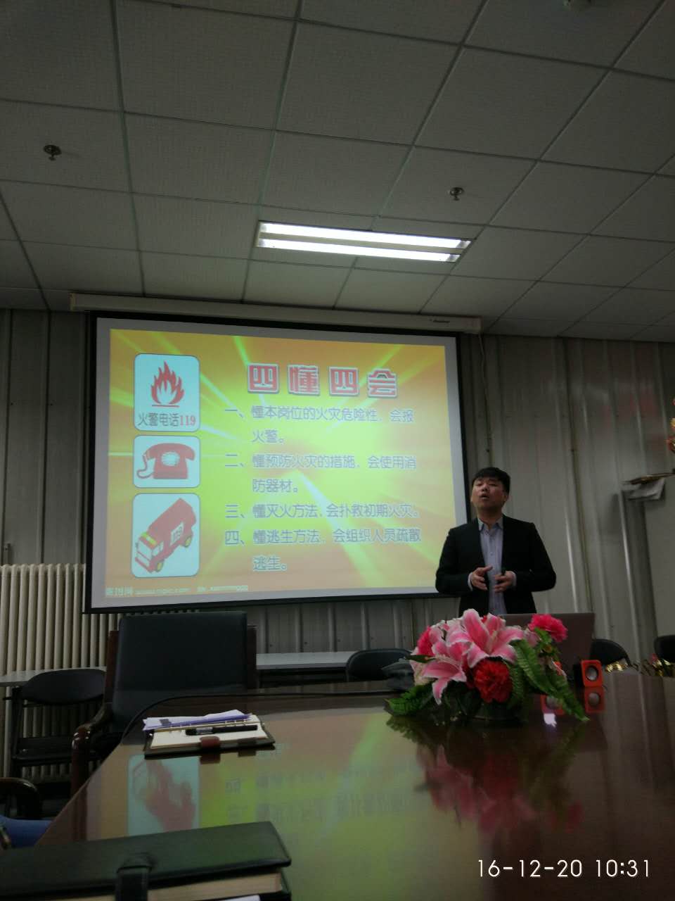 火灾是严重威胁人民群众生命和财产安全的危险事故,防范意识非常重要。为切实做好消防安全工作,加强平安校园建设,2016年12月20日上午10:00,公司在沙河体育馆二层会议室召开了全员防火讲座,旨在提升教师的防火意识,了解防火自救方法,熟悉防火自救工具。
