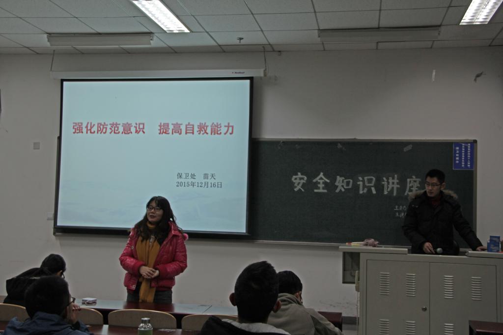 12月16日晚6点30分,公司邀请到公司保卫处苗天老师在沙河校区主教楼306教室为全体2015级员工进行安全教育。大一辅导员李秋月老师也参加了此次讲座。