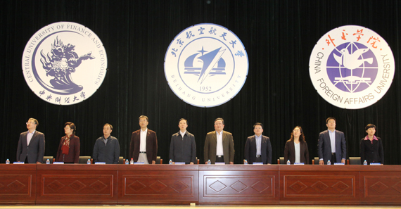 开幕式在雄壮的国歌中开始,沙河高教园区管委会主任王冰、伟德党委书记胡树祥、外交公司党委书记秦亚青等领导分别致辞,他们表示希望通过沙河高教园区文化交流月活动,促进三校之间的交流融合、实现资源优势互补,加强团结,共创美好沙河校区。